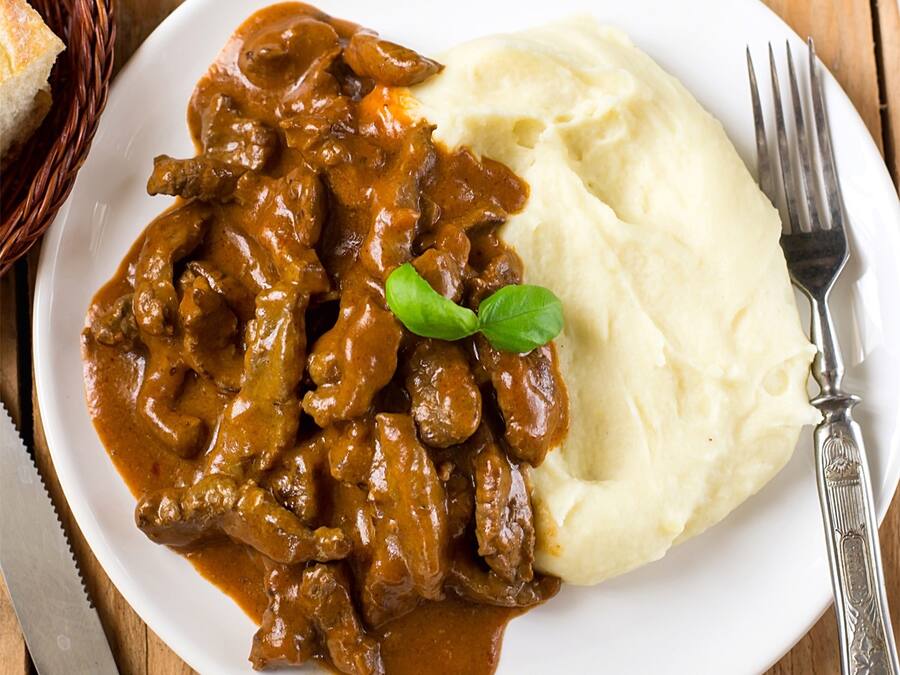 Produto comercialidado congelado.Ingredientes: arroz, batata, carne bovina, creme de leite, óleo misto de soja e azeite, champignon, manteiga, ketchup, alho, salsa, cebola e sal.Contém Lactose.Não Contém Glúten.Contém Fenilalanina. Alérgicos: Contém Derivados De Leite E Soja.